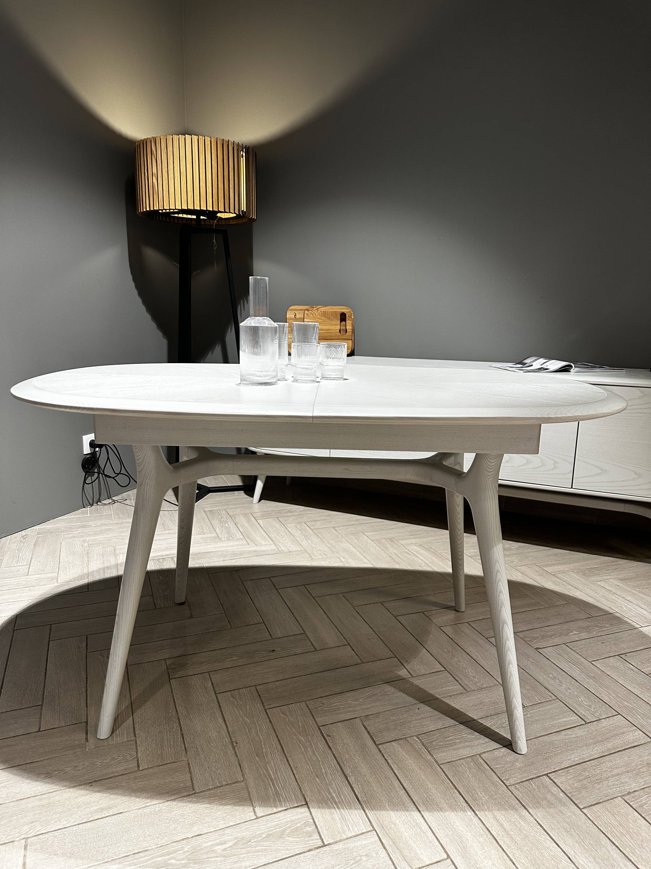 Обеденный раскладной стол Мелодия из массива и шпона ясеня.