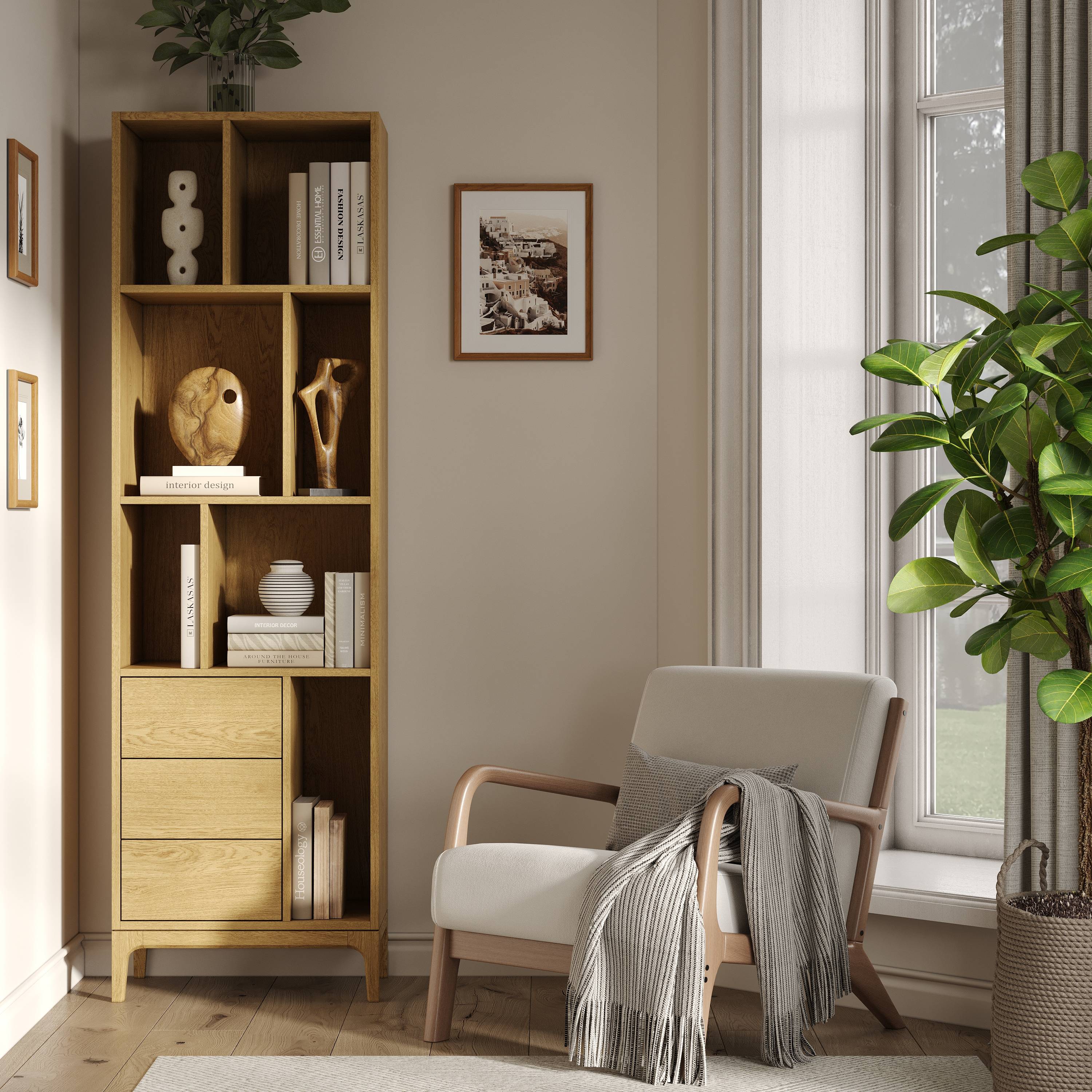 Стеллаж Fredo 3.1 из массива и шпона дуба.