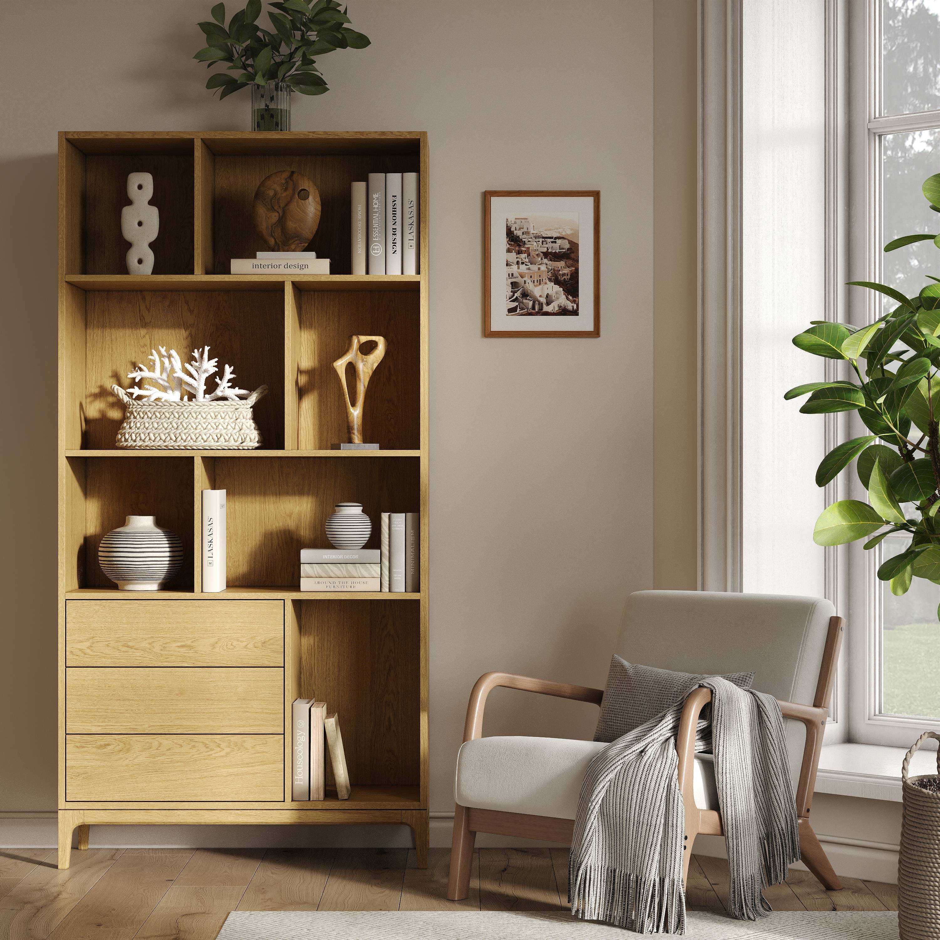 Стеллаж Fredo 3 из массива и шпона дуба.