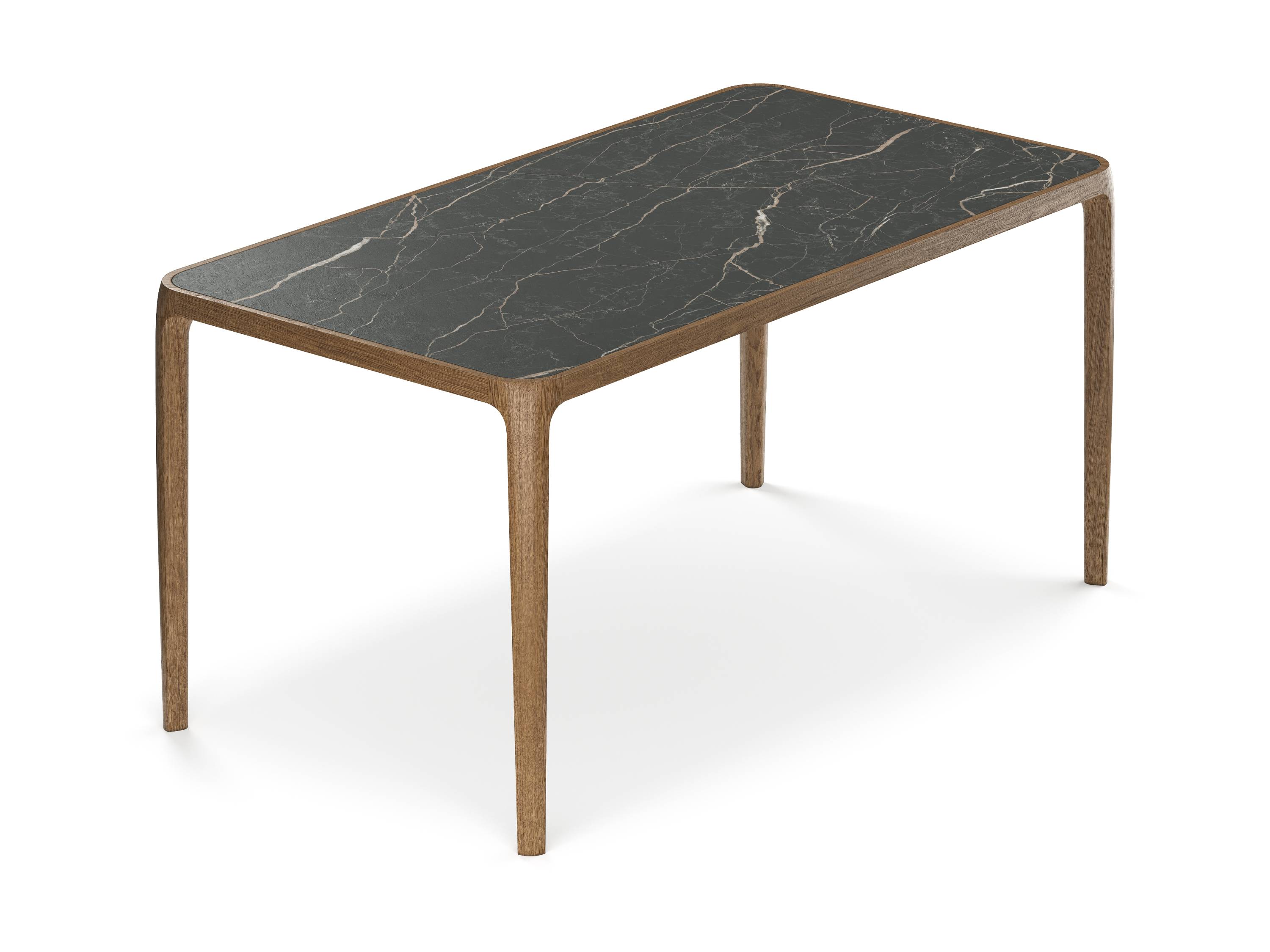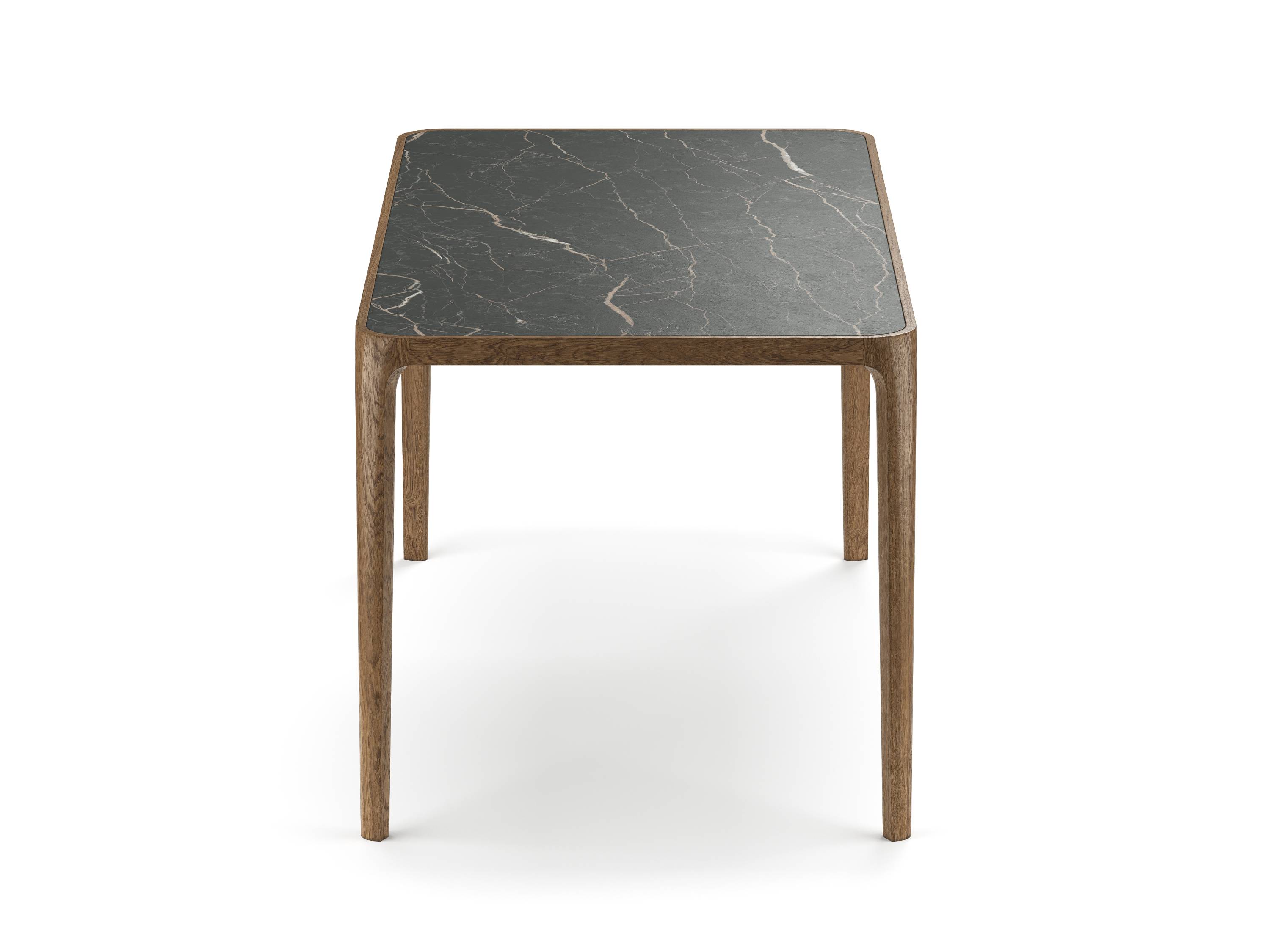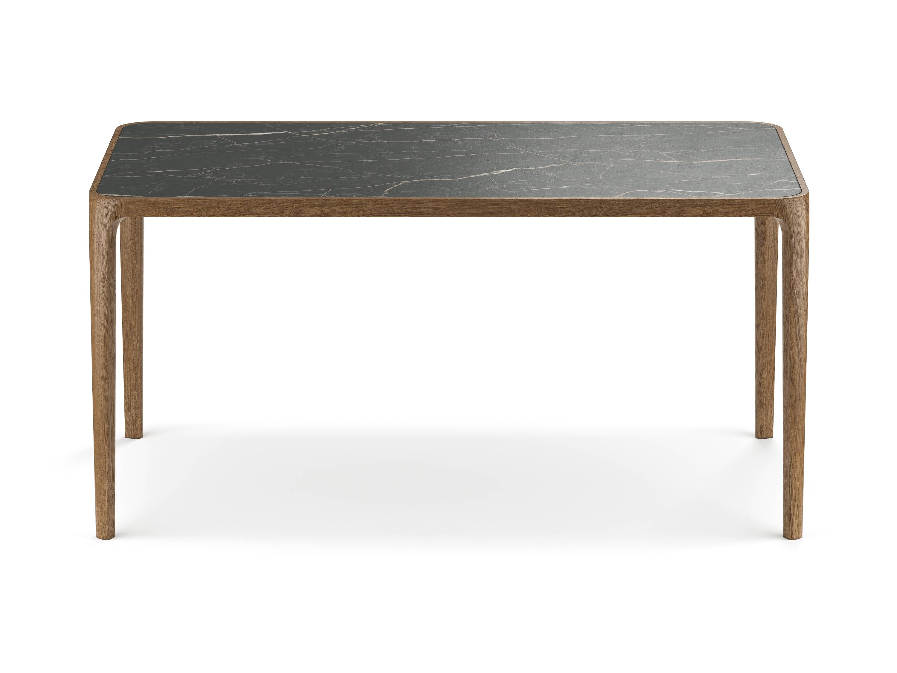 Столешница представлена в трёх вариациях, каждая из которых придаёт столу особенный характер: тёплое натуральное дерево, неподвластная времени керамика или лёгкое, воздушное закалённое стекло.