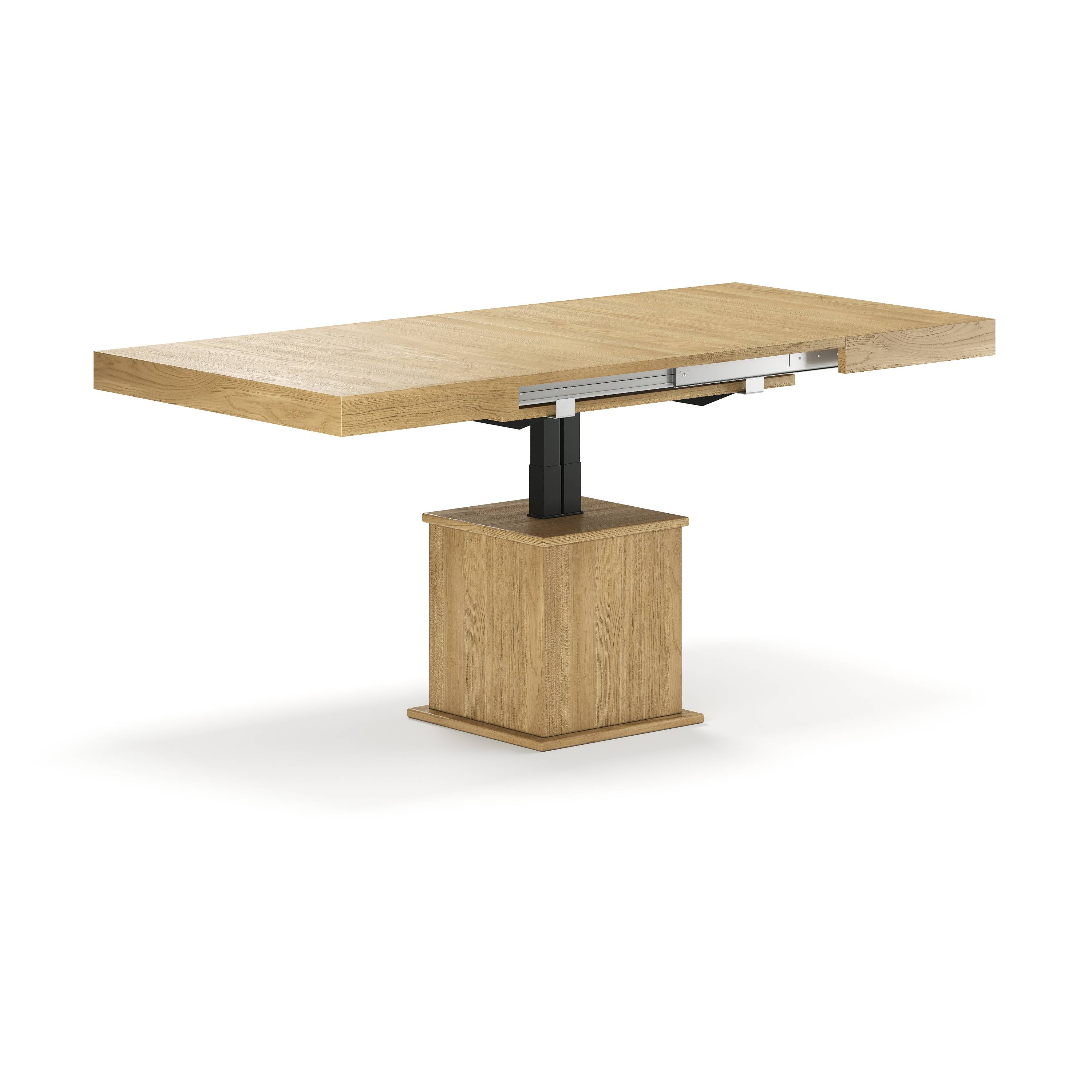 Столы оборудованы подъёмными механизмами компании Ilse, которые сделаны в Германии из стали специального сплава и не требуют какого-либо специального обслуживания, благодаря высокому качеству. Для раздвижения столешниц мы используем направляющие компании «POETKER».