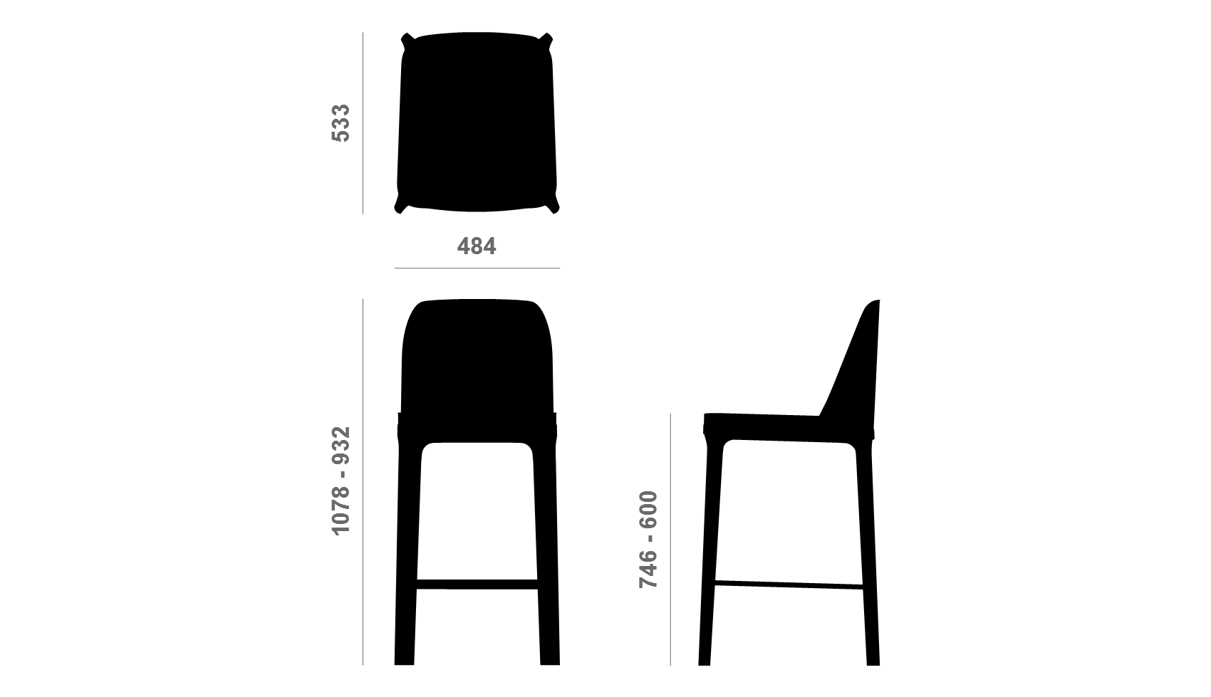 Возможен полубарный вариант высотой посадочного места до 600 мм.
