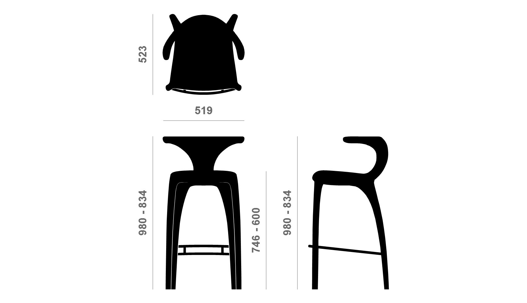 Есть полубарный вариант с высотой посадочного места до 600 мм.