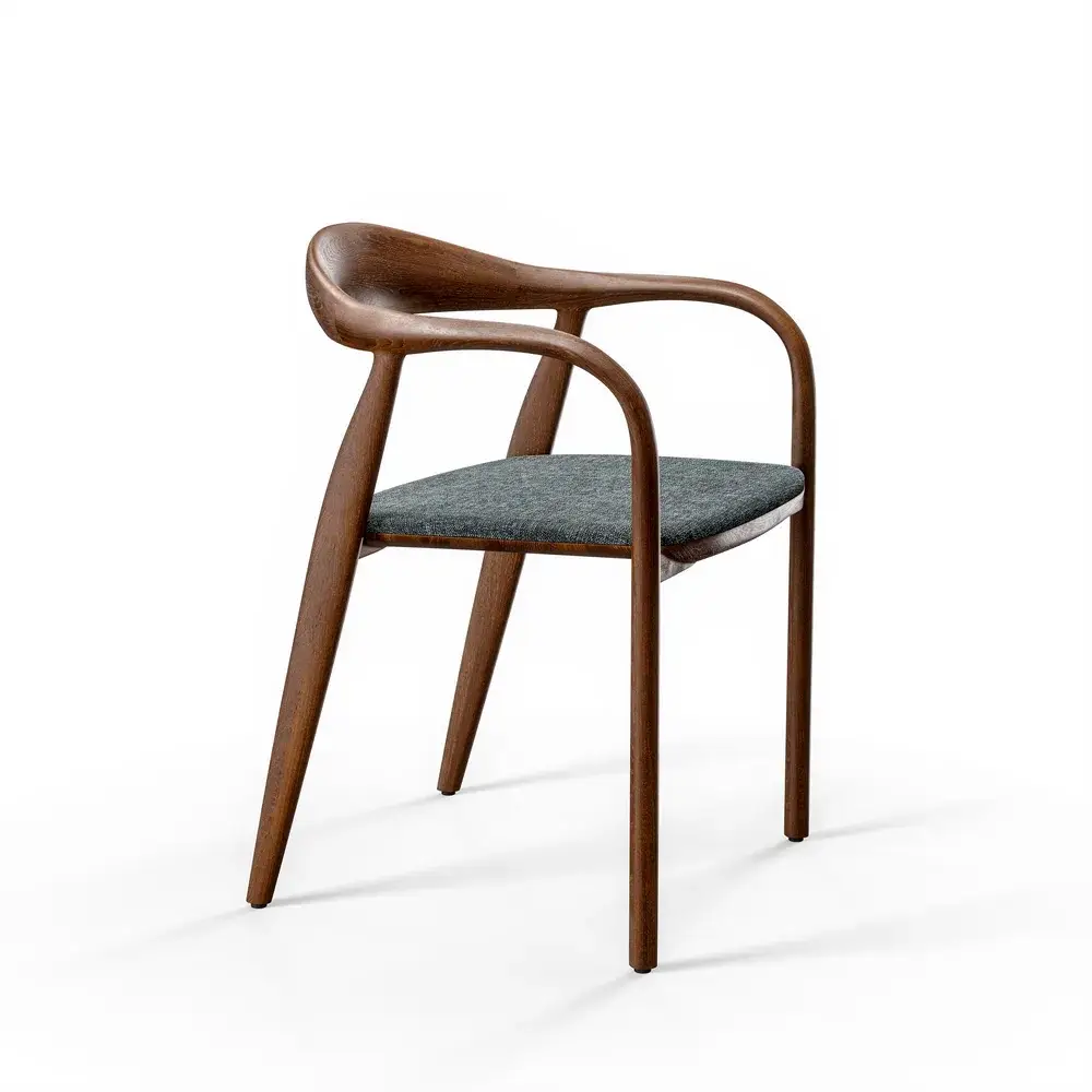 Индивидуальные варианты отделки: 12 оттенков дуба и широкий выбор обивок — от роскошного бархата до минималистичных текстур, что позволяет адаптировать стул к любому стилю интерьера.