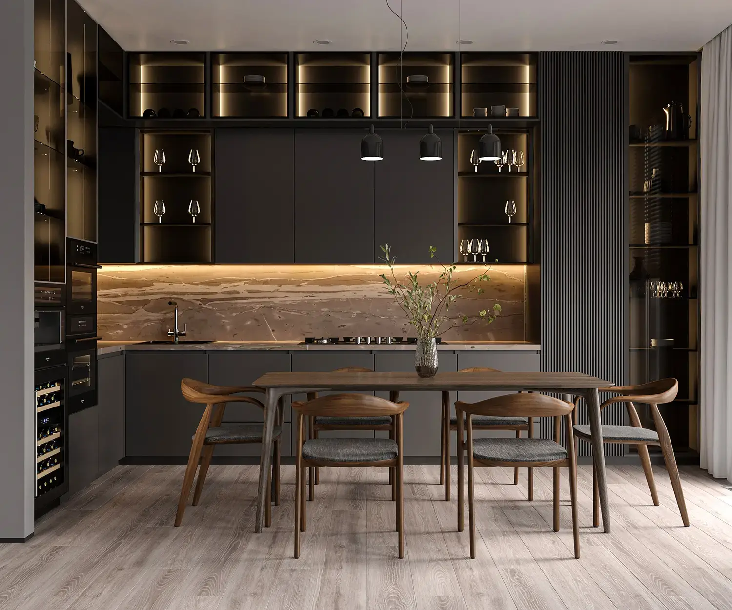 Изогнутые линии повторяют чистоту и баланс природных форм, добавляя мягкость и элегантность в интерьер.